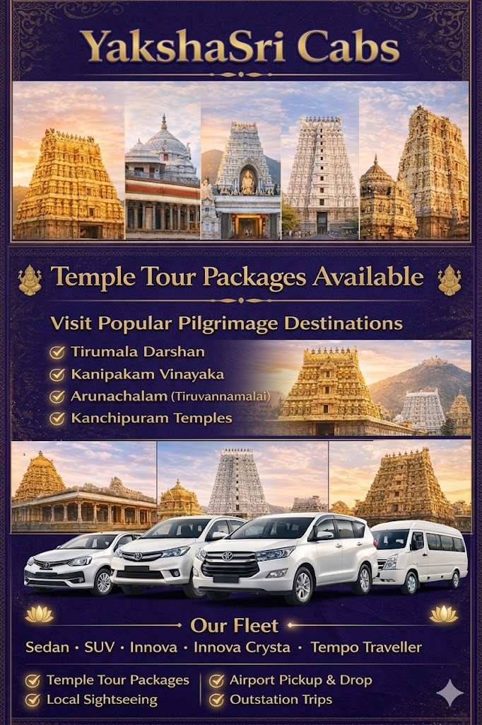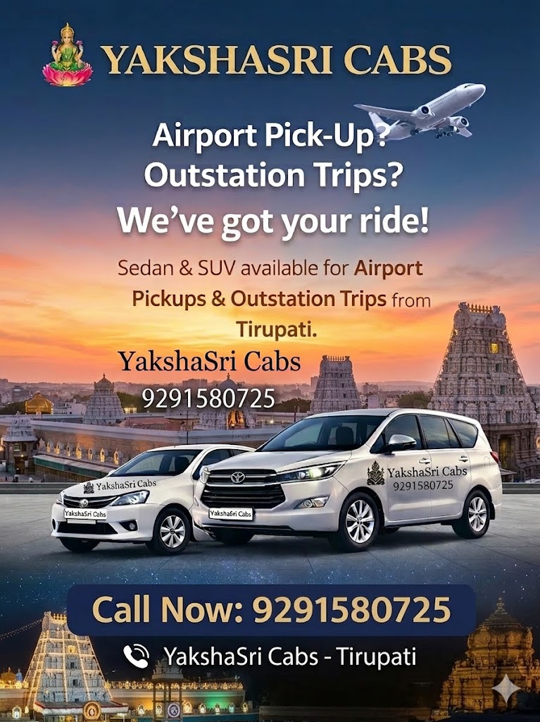 Looking for reliable cab services in Tirupati? Look no further than Yakshasri Cabs. We are committed to providing safe and affordable transportation for all your needs, whether you need a taxi in Tirupati or Tirupati airport cabs. Explore our Tirupati travel packages and book your cab now!